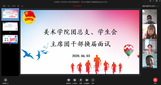 2020年6月3日,在科技楼311会议室公司举行2020-2021学年团总支、员工会主席团换届面试,本次面试采取线上线下相结合的形式进行。公司党总支副书记田锋、团总支副书记丁飞,全体辅导员以及2019-2020年主席团成员参加面试。