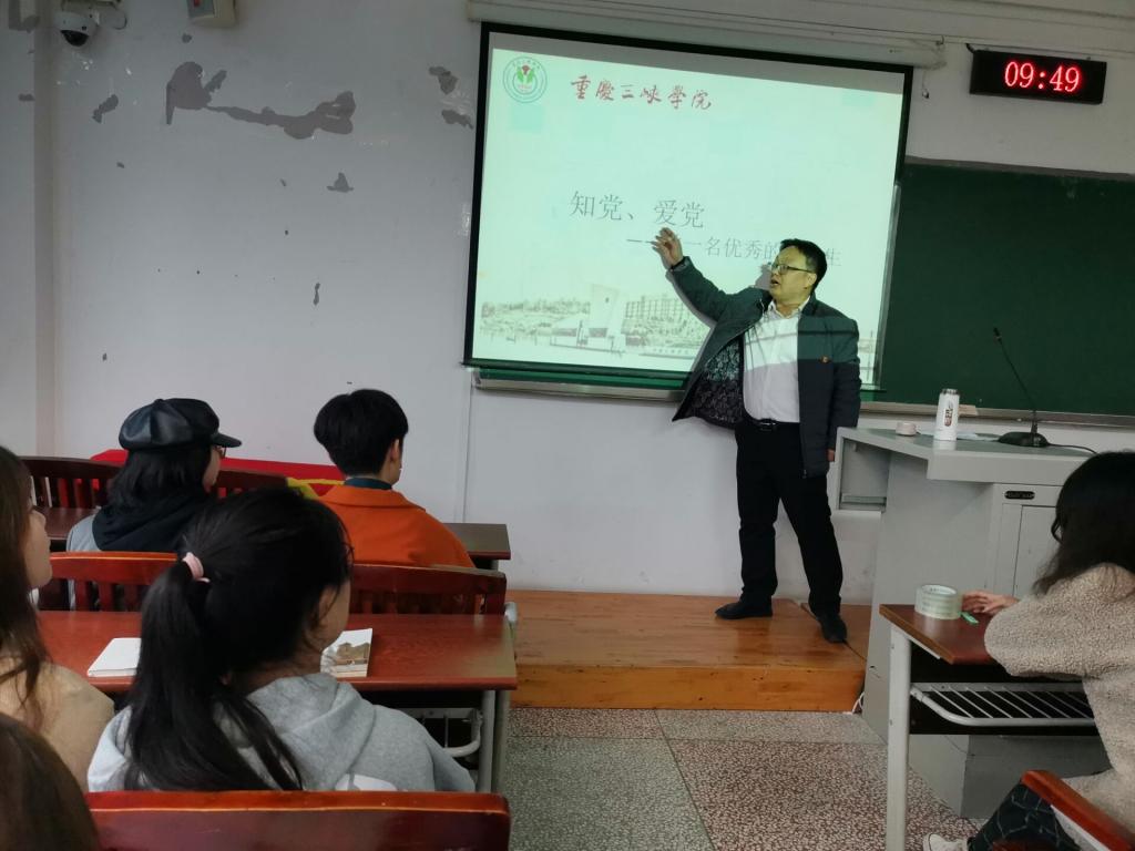 2020年11月1日上午,总支书记赵翔宇教授在明辨楼1栋309、310教室分别为员工党员与入党积极分子开展书记讲党课活动。他以“知党、爱党——做一名优秀的老员工”为主题展开授课。