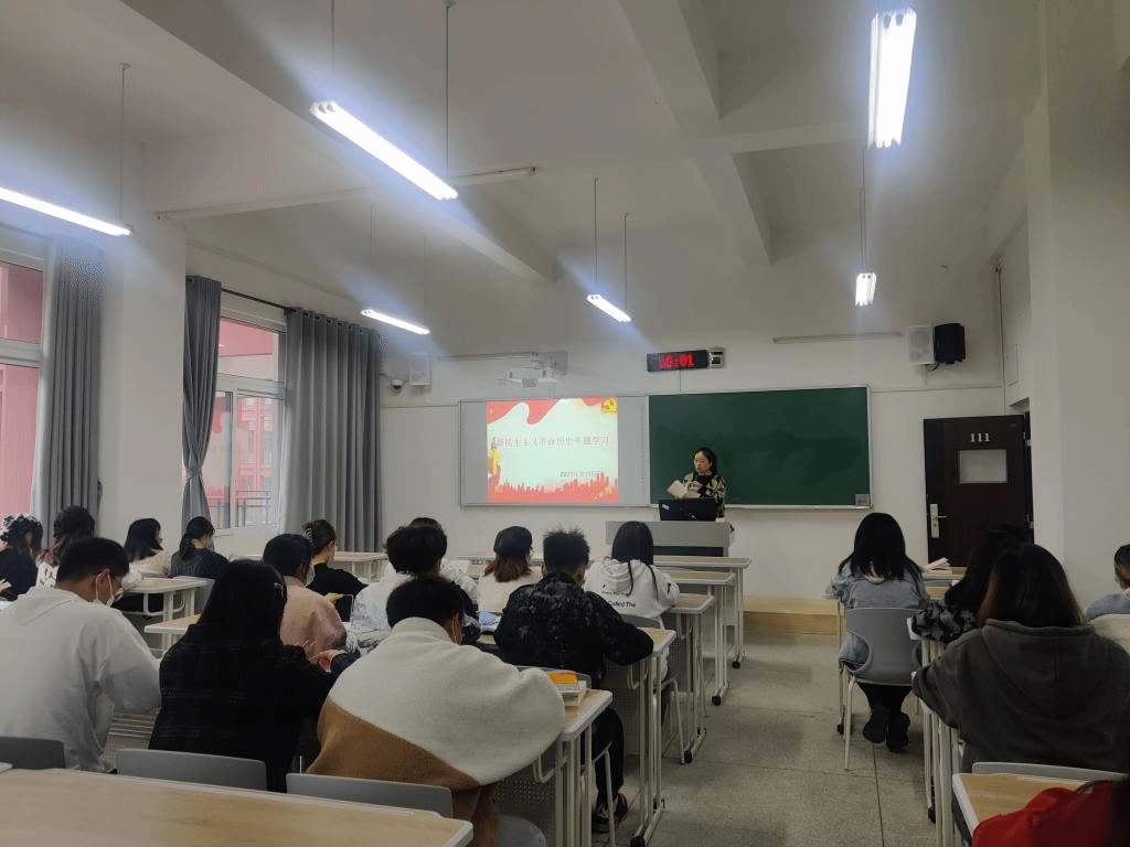 2021年11月5日下午,金沙js5588员工党支部在博学楼2-111教室开展新民主主义革命历史专题学习,员工支部全体人员参加,会议由支部书记龙婷婷主持。