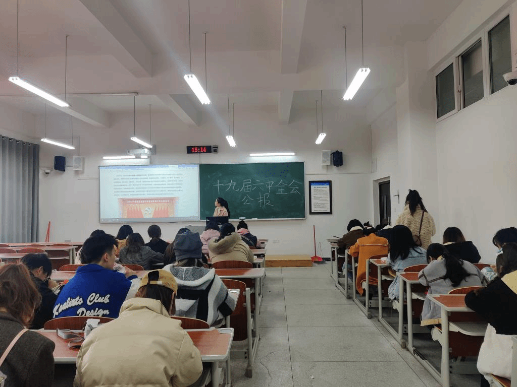 2021年11月19日下午,金沙js5588员工党支部在博学楼2-304教室召开会议,集体学习十九届六中全会精神,全体党员出席会议。