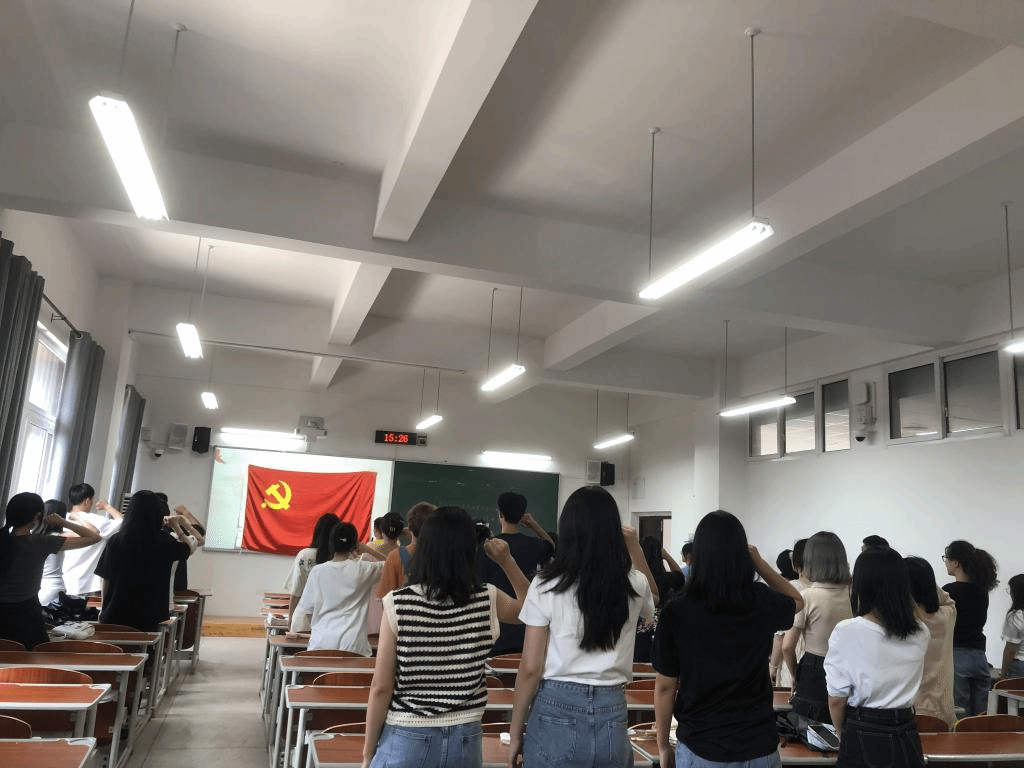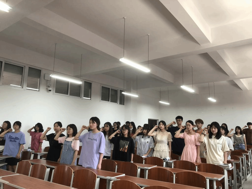 2022年6月24日下午,为加强员工党员的党性教育,提高员工党员的思想觉悟,金沙js5588员工第一、第二党支部在博学楼2-305教室举行“忆初心、践使命、重温入党誓词”主题党日活动暨新党员入党宣誓仪式,会议由金沙js5588员工第二党支部书记龙婷婷主持,共计51名党员同学出席此次活动。