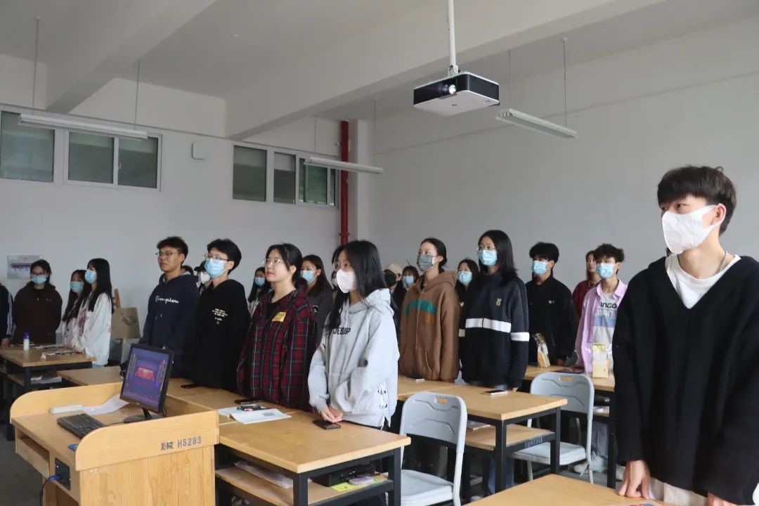 大会在嘹亮的国歌声中拉开帷幕,全体师生起立,唱响国歌。直播过程中,全体师生聚精会神,认真聆听。