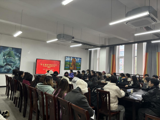 会上,刘荣君带领同学们对《习近平新时代中国特色社会主义思想专题摘编》进行阅读学习,并通过视频、PPT图文展示讲解国家安全包括哪些方面、危害国家安全行为、如何维护国家安全、个人如何维护国家安全和谁来保卫国家安全等五个方面内容。