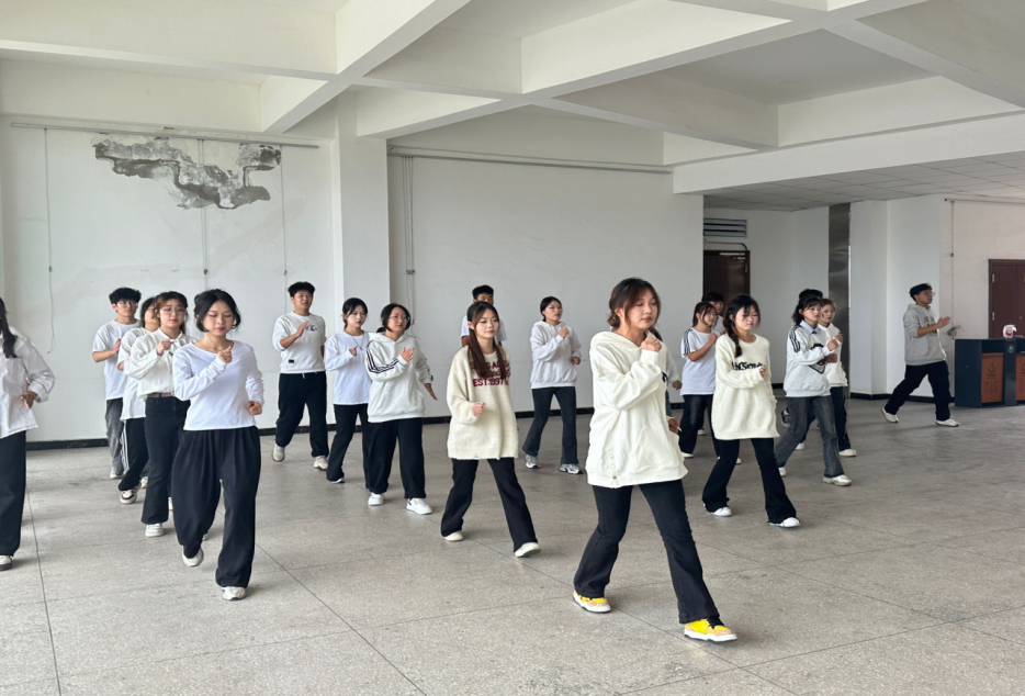 为丰富校园文化生活,提高员工的心理健康素质,展现青春学子的活力与风采,2024年10月26日中午,金沙js5588心理健康协会在博学楼5B-5C连廊成功举办了“校园韵律动,青春舞华章”心理健康操比赛活动,2024级全体同学参与此次活动。