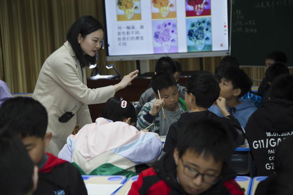9点50分,观摩学习国本中学熊昊老师的公开课《用画笔触摸细节》。