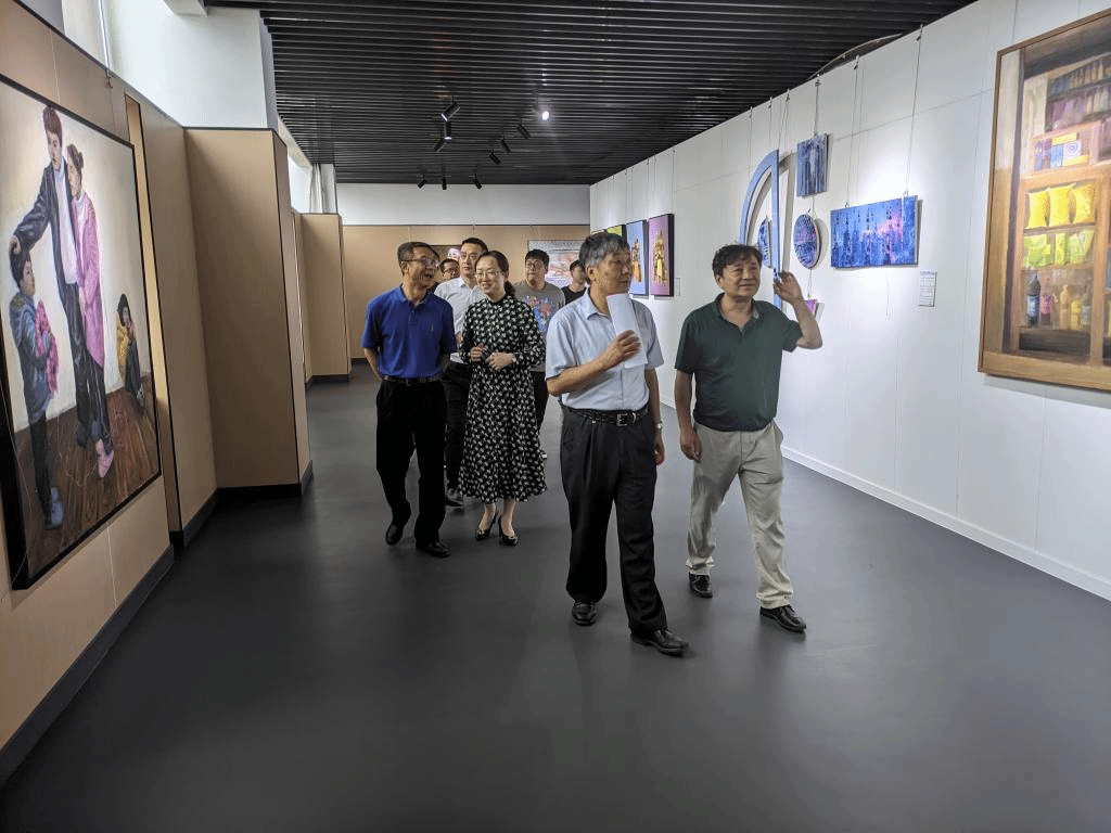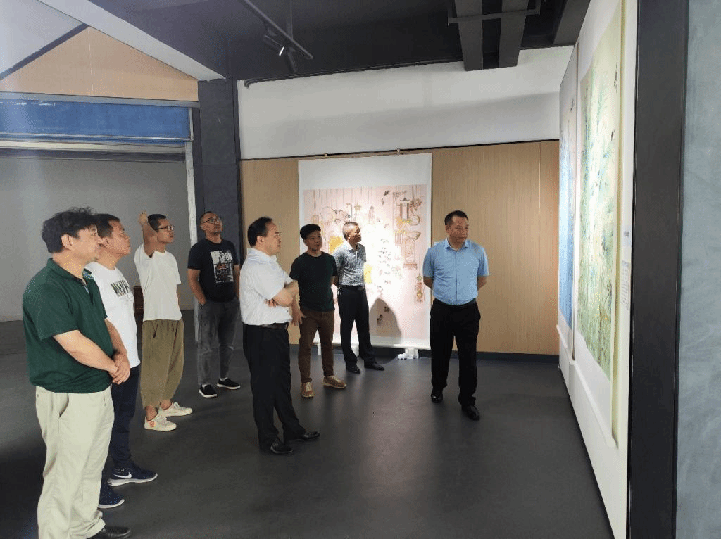 2022年6月8日,学公司党委书记李廷勇、董事长张伟、副董事长臧小林、纪委书记代远红等人到金沙js5588参观2018级毕业作品展。美术公司领导班子成员及2018级视觉传达设计专业毕业生代表陪同参观讲解。